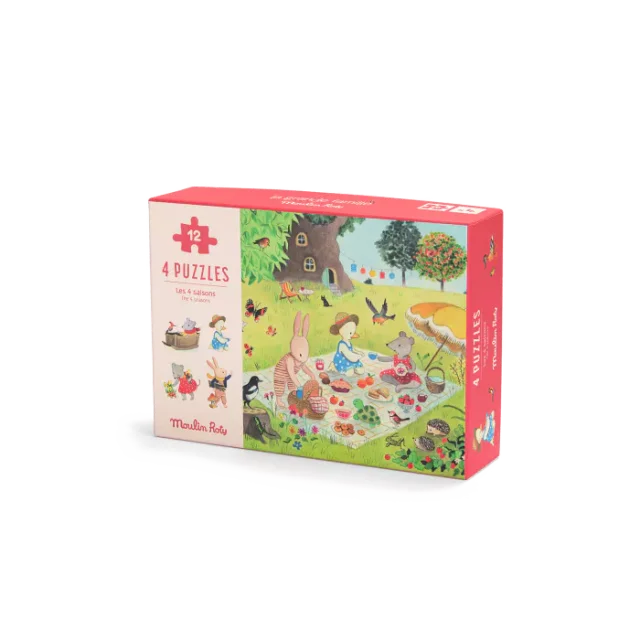 4 mini puzzles des saisons 12 pièces La grande famille - Moulin Roty