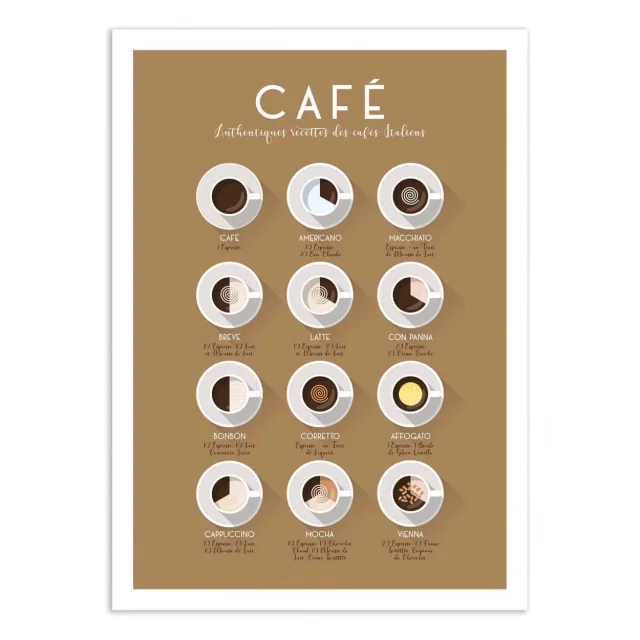 De plus, découvrir les recettes traditionnelles des cafés italiens à travers cette affiche est une véritable expérience culturelle. Ces recettes, transmises de génération en génération, sont le reflet de l'art de vivre à l'italienne.