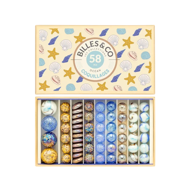 Box Coquillages Coffret de 58 billes - Billes and Co