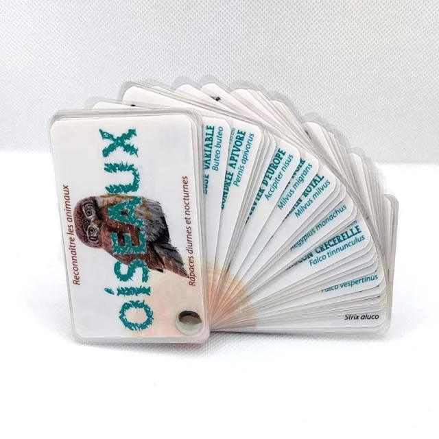 | Matériaux | Cartes en papier 80g PEFC, reliure en inox, pochettes de plastification |