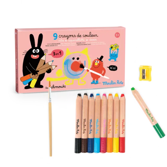 Libérez la créativité de votre enfant avec les crayons de couleur 3 en 1 Les Schmouks de Moulin Roty et laissez-le s'immerger dans un monde d'aventures artistiques colorées et joyeuses.