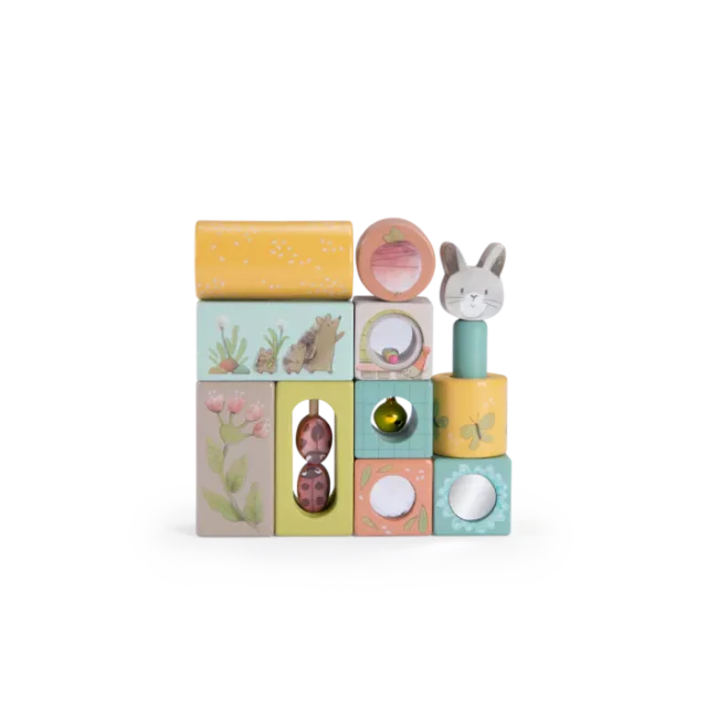 Les Cubes d'activités Trois petits lapins de Moulin Roty invitent votre enfant dans un univers fascinant où éveil, découvertes et amusement se rencontrent. Inspirés par les aventures de trois adorables lapins aux longues oreilles, ces cubes sont bien plus que de simples jouets : ils sont une porte d'entrée vers un monde de magie et de tendresse.