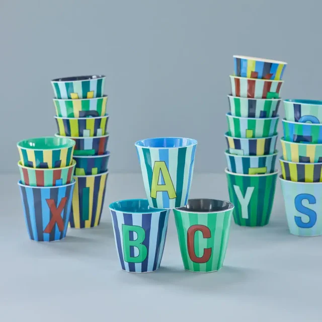 Gobelet médium mélanine Lettre rayée Bleu - Rice