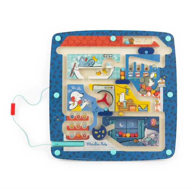 La collection Puce et Pilou de Moulin Roty se distingue par son style rétro-vintage, rappelant les doux souvenirs des années 80-90. Imaginé dans un design unique, ce labyrinthe magnétique s'inscrit parfaitement dans cet univers nostalgique, tout en apportant une touche de modernité.