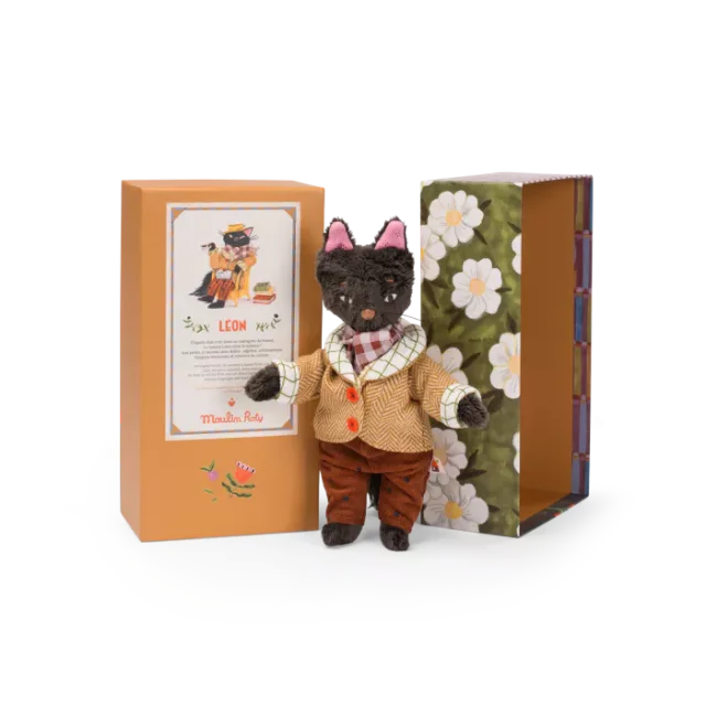 Découvrez Léon le chat de la collection "Les Minouchkas" de Moulin Roty, une peluche articulée qui transportera votre enfant dans un monde magique et enchanteur. Les Minouchkas, imaginés par l'artiste talentueuse Lucille Michieli, sont des personnages attachants qui habitent un village plein de mystères et de fêtes joyeuses.