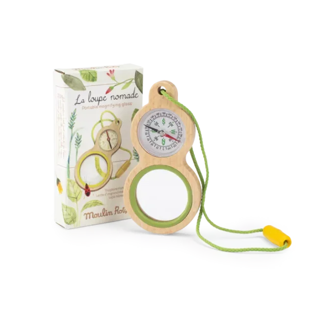 Avec la Loupe nomade Le Jardin du Moulin de Moulin Roty, chaque sortie devient une mini-aventure à hauteur d'enfant. Grâce à ses différents grossissements et sa boussole intégrée, votre petit explorateur observe, compare, cherche... et s'émerveille! Un joli accessoire de découverte, parfait dès 3 ans pour nourrir la curiosité et l'amour de la nature.