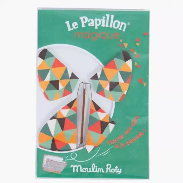 Les Petites Merveilles de Moulin Roty, c'est une collection d'objets du quotidien transformés en véritables trésors. Ici, le papillon magique Kaléidoscope prend son envol et emporte avec lui un vent de surprise et de poésie. Il suffit de tourner ses ailes plusieurs fois et de le glisser dans un livre ou une carte. À l'ouverture, le papillon s'envole, pour le plus grand émerveillement des petits et des grands.