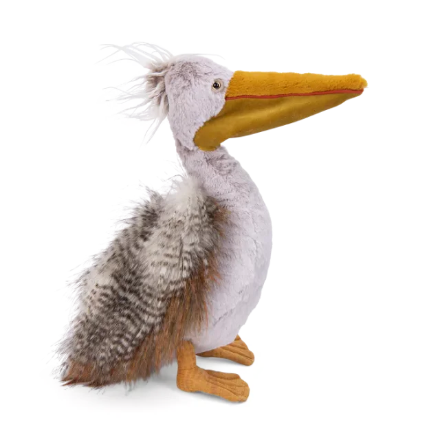 La Peluche Pélican Tout autour du monde est conçue pour offrir une expérience de jeu enrichissante et sûre. Sa taille de 39 cm la rend parfaite pour décorer la chambre de votre enfant tout en lui offrant un compagnon de jeu à câliner. Avec son long bec et ses pattes palmées, ce pélican majestueux est doté d'une huppe ébouriffée et d'une fourrure rayée, ajoutant une touche de féerie et de spectacle à la chambre de votre enfant.