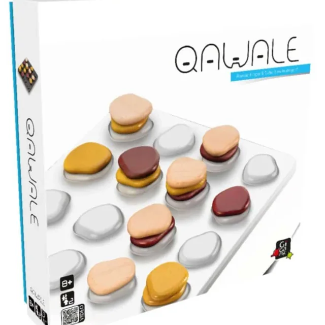 Simple et tactique à la fois, Qawale trouve son inspiration dans les piles de galets que l'on trouve au bord des chemins. À l'image de ces pierres qui voyagent, placez un galet au sommet d'une pile avant de l'égrener sur les cases du plateau. Formez une ligne de 4 galets à votre couleur pour remporter la partie.