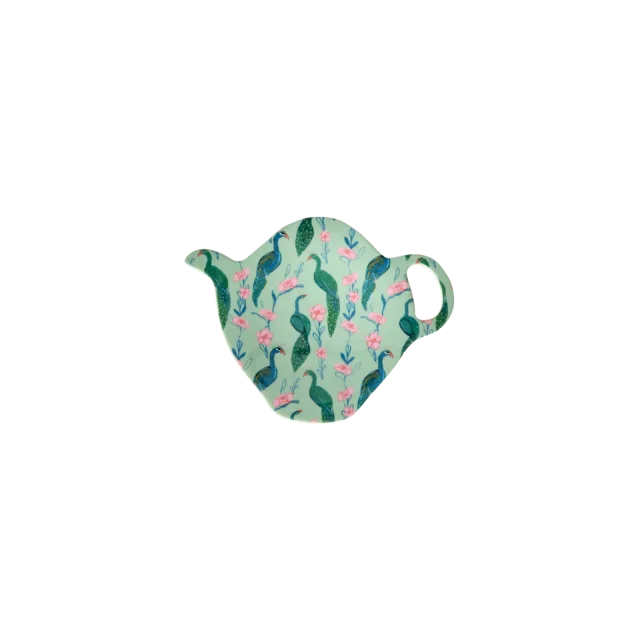 Le Repose-sachet de thé Vert Peacock Power Print de la marque Rice est plus qu'un simple accessoire de table, c'est une véritable invitation à voyager. Cette pièce de la collection Art de la table est inspirée par les motifs colorés et joyeux du paon (peacock en anglais), créant un espace d'évasion à chaque utilisation.