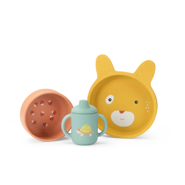 Offrir le set vaisselle silicone Trois petits lapins lors d'une naissance est un choix judicieux et attentionné. Ce set allie esthétique et fonctionnalité, faisant le bonheur des parents comme des enfants. Il est souvent choisi comme cadeau de naissance en raison de son design intemporel et de sa praticité, apportant une touche de magie à chaque repas.
