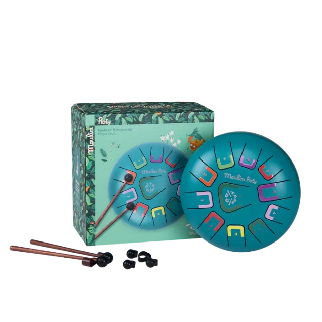 Le tambour à languettes, également connu sous le nom de Tongue Drum, est un type d'instrument à percussion. Il possède 11 notes indiquées par une couleur et un chiffre, offrant aux enfants la possibilité de jouer des mélodies relaxantes et envoutantes. Ils peuvent jouer avec les mains, le bout des doigts ou à l'aide des deux baguettes et quatre pics à doigts inclus.