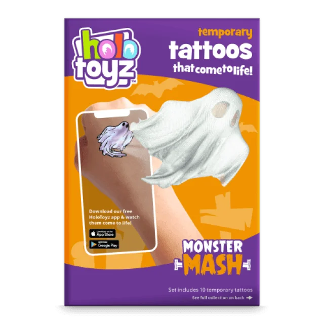 Regardez les tatouages temporaires de personnages effrayants prendre vie, lorsqu’ils sont scannés avec notre application gratuite HoloToyz !